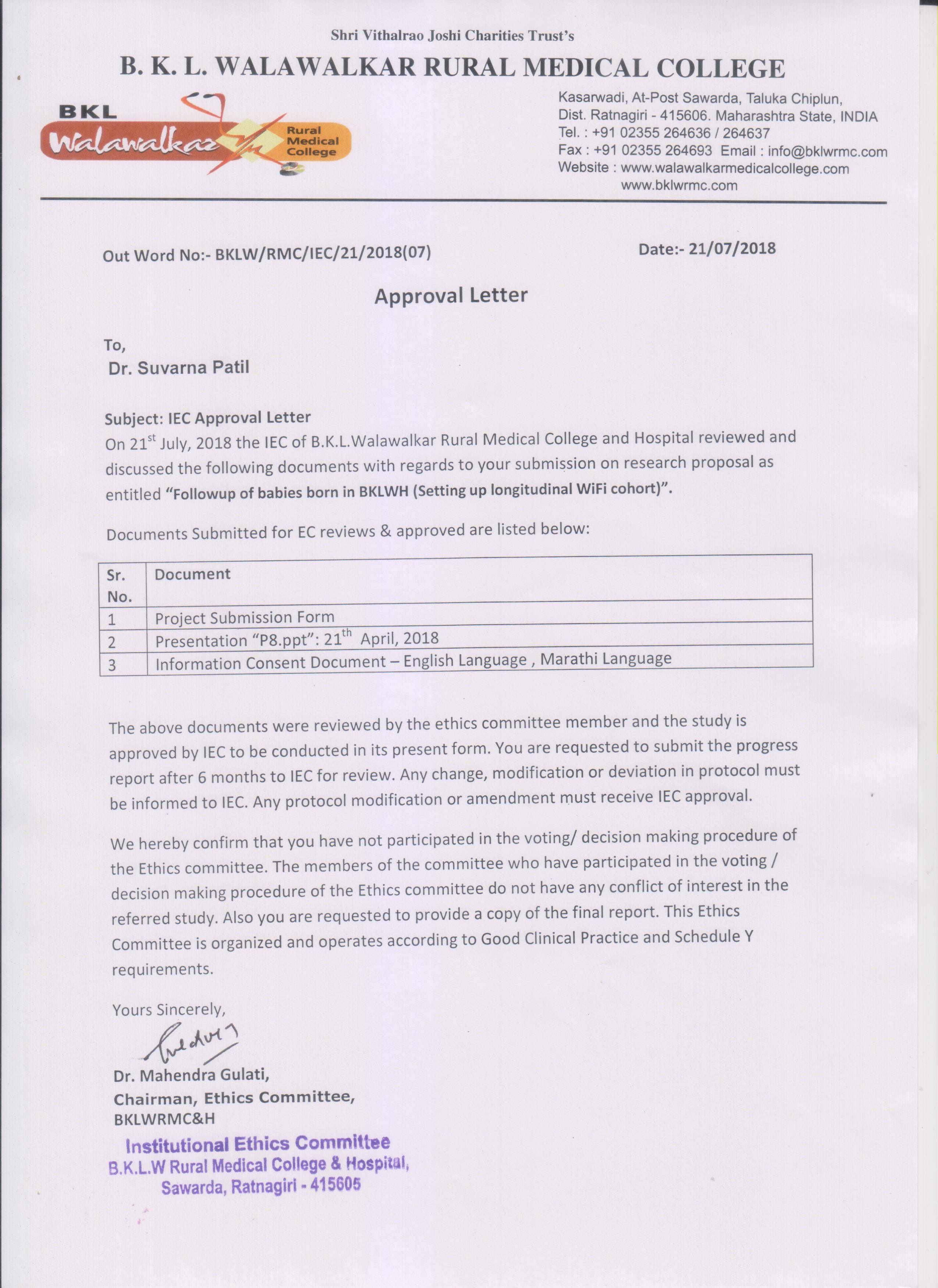 Antenatal care for healthy mother and healthy baby Early marriages, multiple pregnancies, poverty, alcoholic husbands, insufficient food, and heavy physical labour on the farm/home lead to malnourishment in most women within the Konkan region. To strengthen the roots of society, the hospital decided to concentrate on the health of pregnant women. A team of doctors & nurses was formed, well-equipped with medicines and ‘nutritious ladoos’; these teams visit the villages, treat the poor & malnourished pregnant women right at their doorstep to ensure safe, healthy delivery and post-recovery. This has led to reduction in maternal mortality rate and improvement in birth weight of newborns. Institutional Ethics Committee approval for followup of babies born in BKLWH (Setting up longitudinal WiFi cohort) Research findings and scientific publications from our landmark study BKL Walawalkar Yashoda Yojana